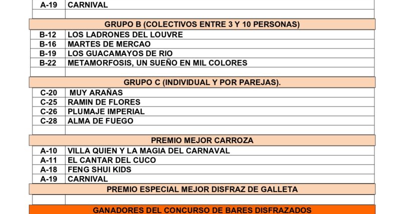 Ganadores de los diferentes concursos del Carnaval de la Galleta. En esta lista no figura el orden de los premios. Estos se harán públicos el martes 17 de febrero a las 20.00 h en la […]Giovanni Peláez hace un balance de como está desarrollándose el Carnaval de la Galleta