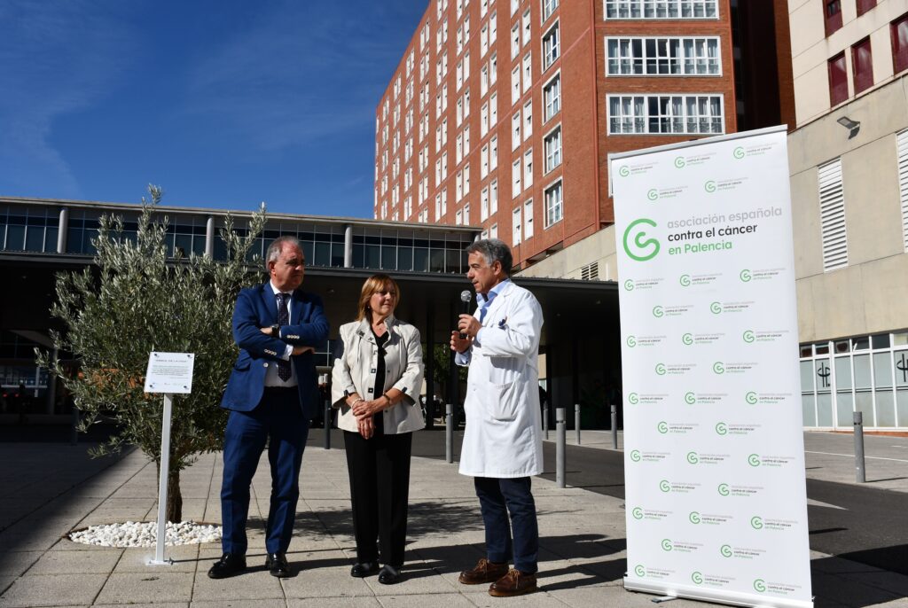 Este monumento natural ha sido donado por la AECC como ‘símbolo de longevidad y resistencia’, tal y como reza la placa conmemorativa colocada junto al árbol. “Representa nuestra lucha, un olivo fuerte y resistente como lo son los pacientes de cáncer”, ha explicado la presidenta de la AEEC en Palencia, Rosa Andrés, durante su intervención. Unas palabras que fueron respaldadas por el delegado de la Junta de Castilla y León en Palencia, José Antonio Rubio, quien ha querido felicitar a la asociación por esta iniciativa. “Este árbol simboliza esa fuerza doble, la de los pacientes queriéndose curar y la de los profesionales sanitarios que también luchan por tratar esta enfermedad y obtener mejores resultados cada día”, ha señalado.