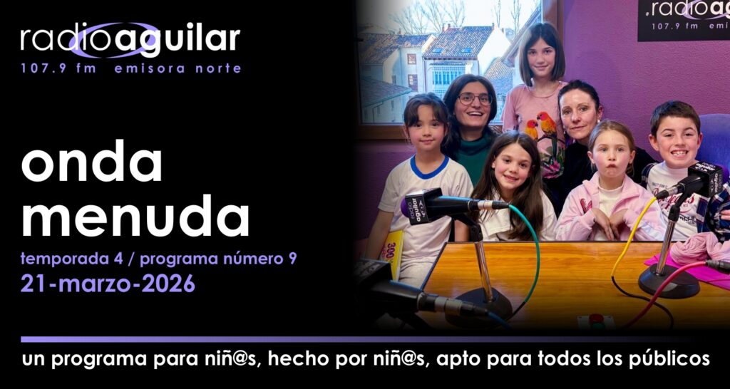 En Radio Aguilar tenemos hoy un nuevo programa que hemos realizado en el taller de radio ‘Onda Menuda’, con niños y niñas de entre 6 y 10 años de Aguilar de Campoo. En el espacio de hoy tenemos todos los ingredientes para que sea un ratito divertido y ameno: noticias curiosas, adivinanzas, trabalenguas, música y muchas sorpresas más.
